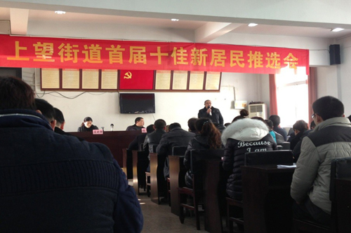 2013年1月14日,迎來首屆上望街道新居民推選會(huì),來自上望街道20家單位的20名新居民發(fā)表自己內(nèi)心真摯,熱情的演講。